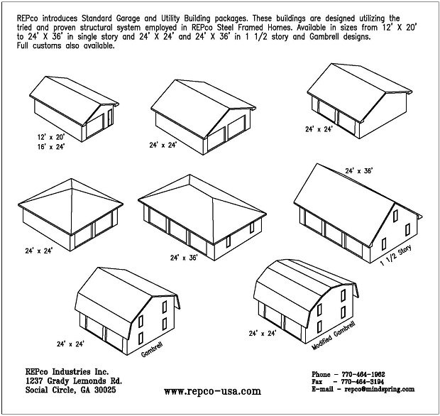 You choose the size, ceiling height, roof pitch and location of wall openings for your custom garage or utility building and REPco will design/ engineer the building kit and ship it to your site.